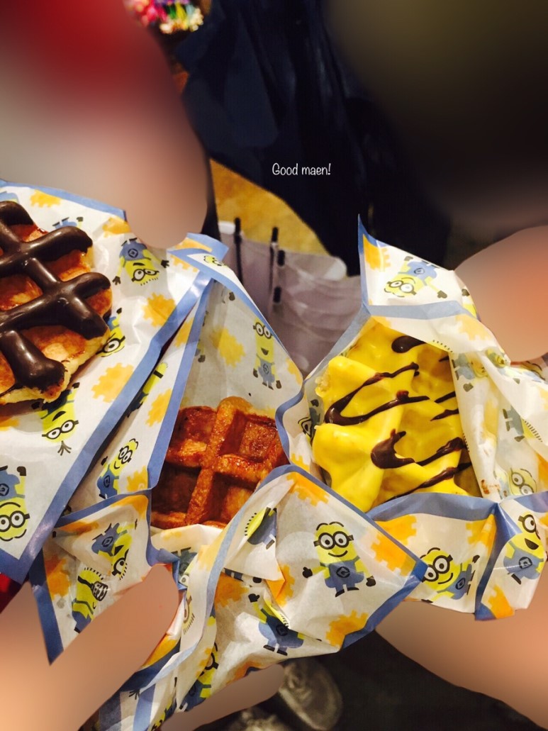 많은 군것질거리들이 있었지만, 마지막에 먹은 미니언즈 와플가게가 기억에 남네요♥